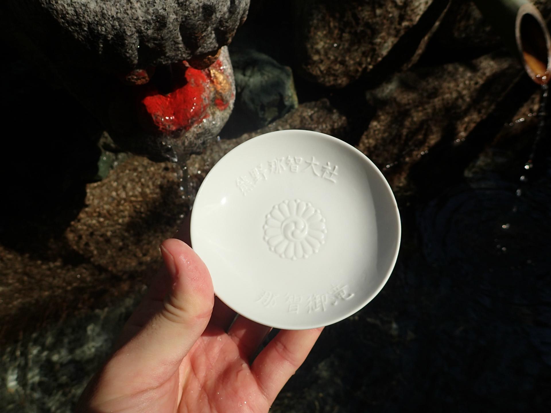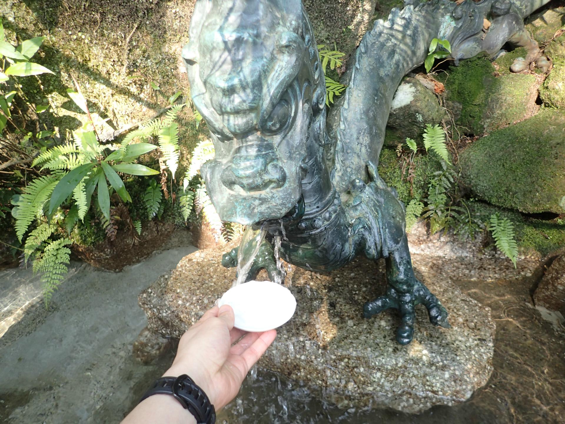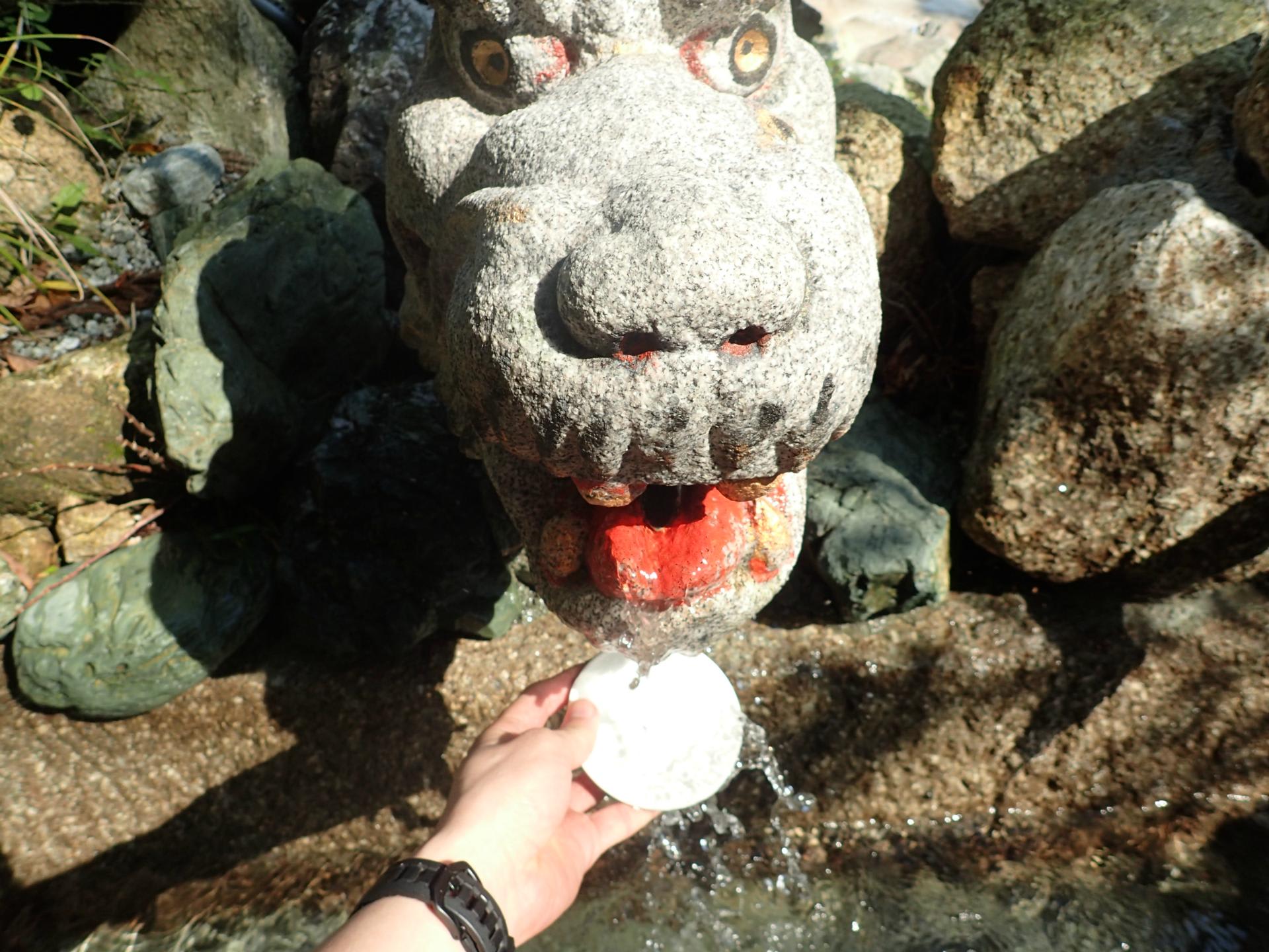 舞台への入口近くには延命長寿の霊水があり、盃(100円)で飲むことができます。