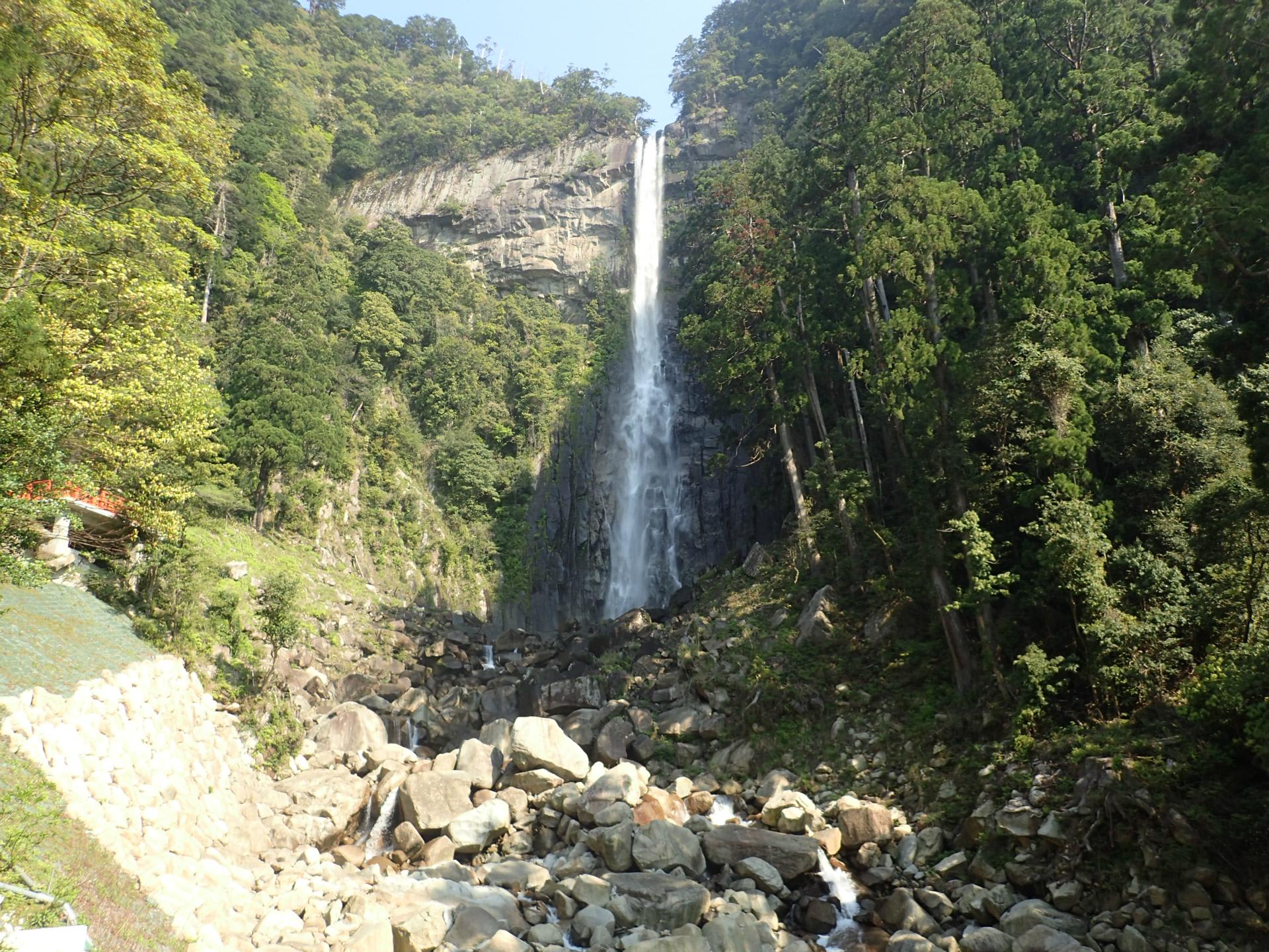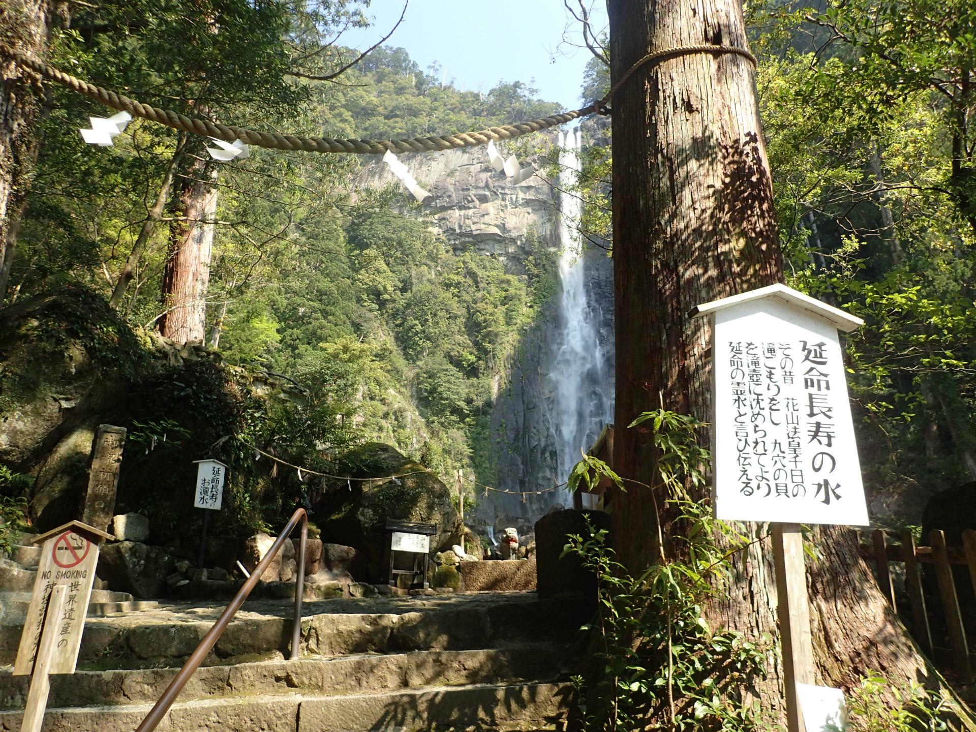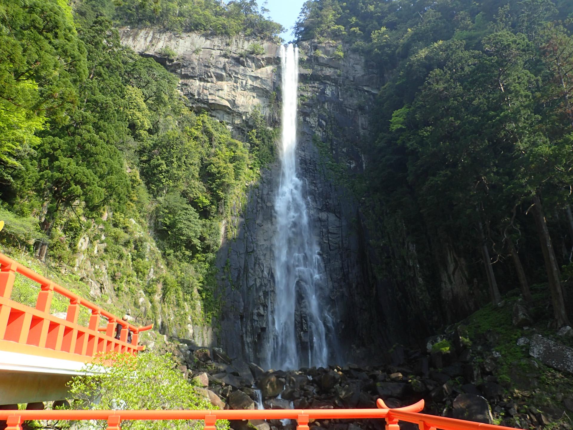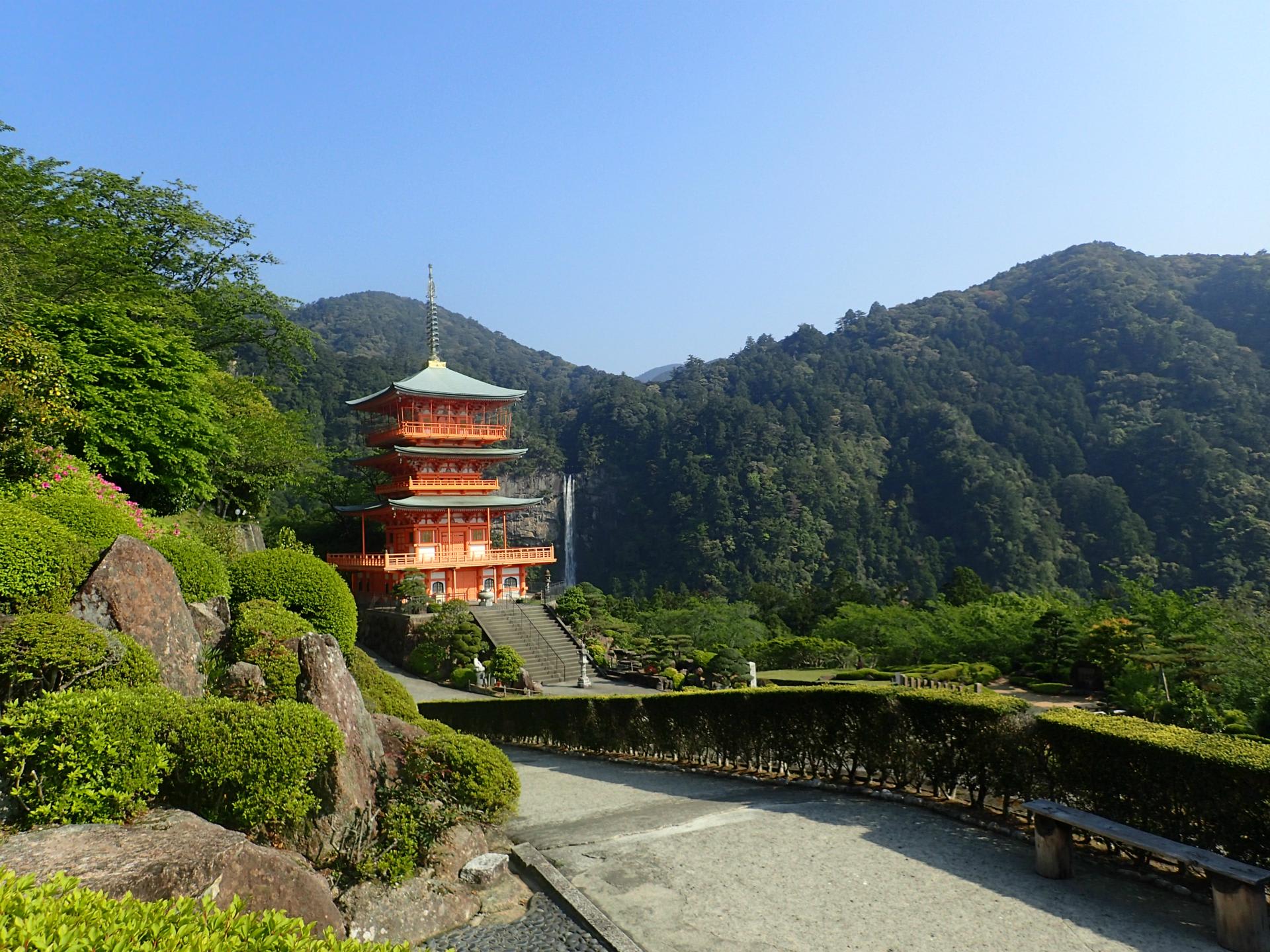 また、那智山のシンボル三重塔と日本三名瀑のひとつに数えられる那智の滝も見えます。