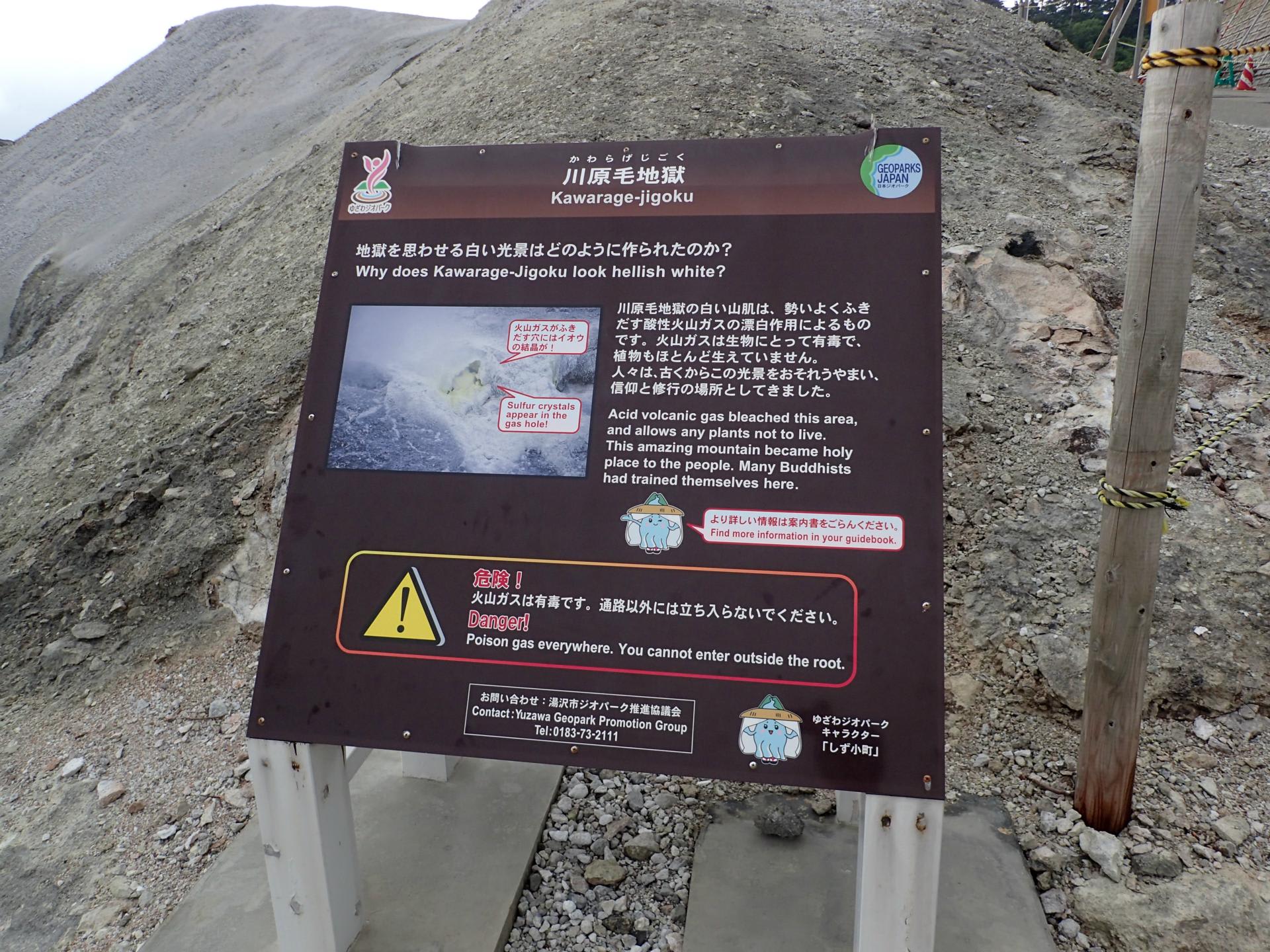 高濃度の有毒ガスのため立入禁止看板が立っていました。
