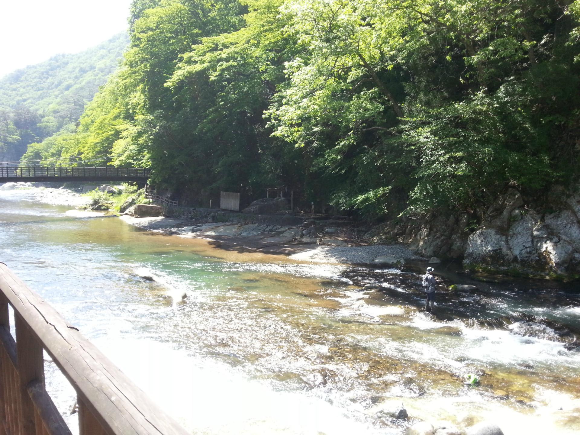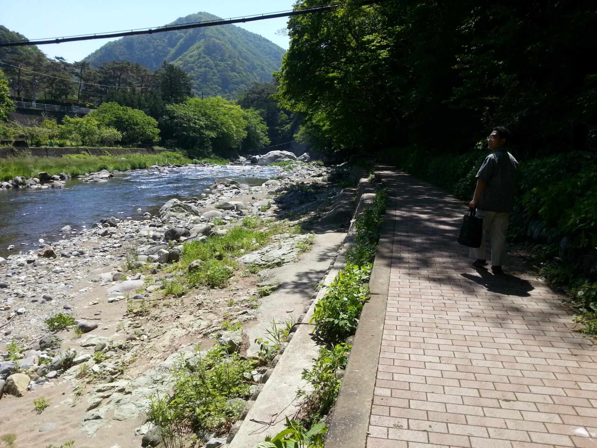 途中、川で魚釣りをしている人がいました。