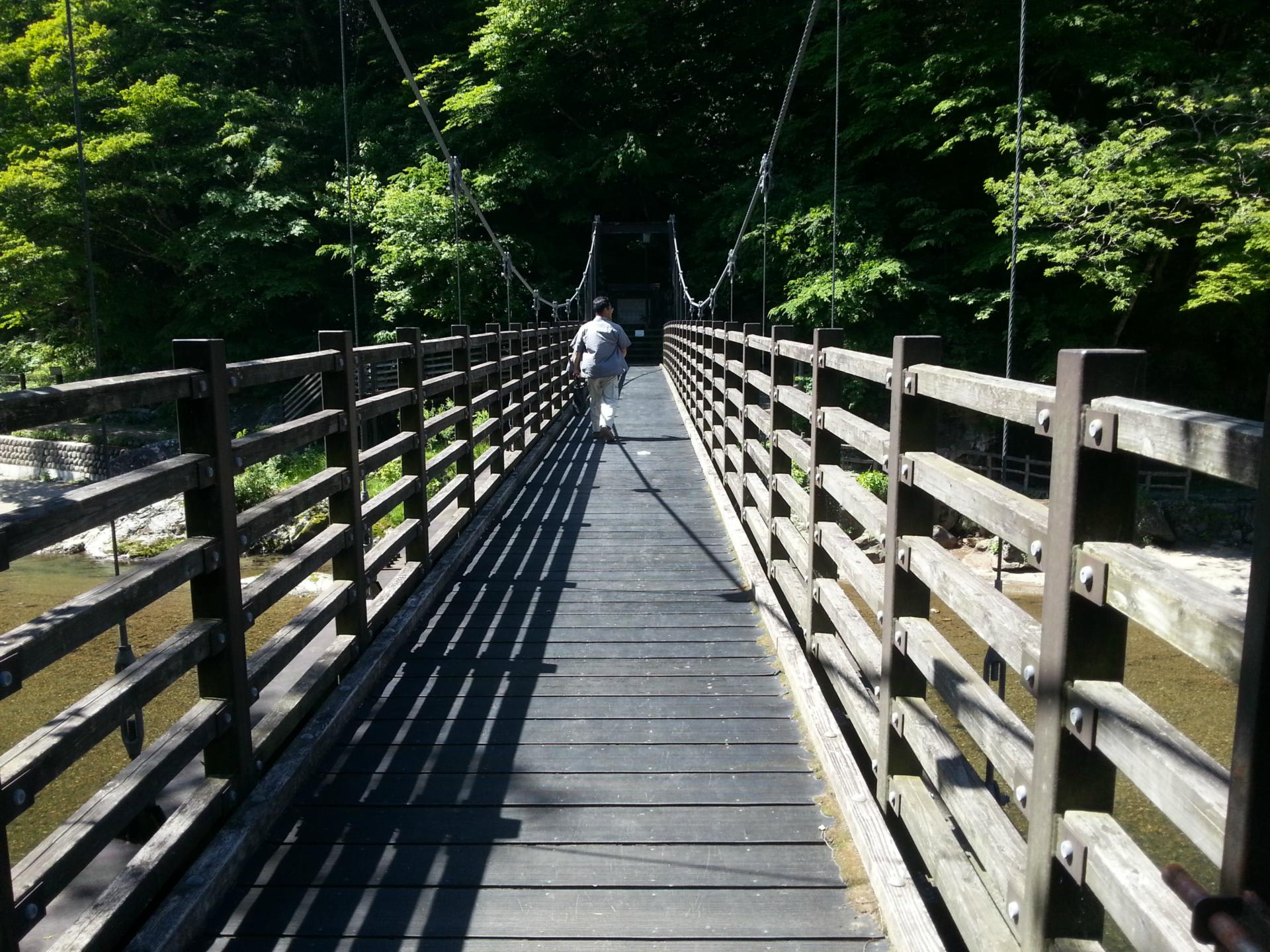 「岩の湯」へ繋がる橋を渡り、左(進行方向)へ進みます。